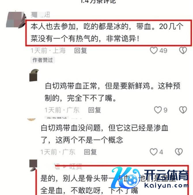 有厨师网友分析说,那白切鸡骨头里这样多血水,显著是冷冻预制鸡没解冻透就蒸,还没蒸熟就端上桌了 。
