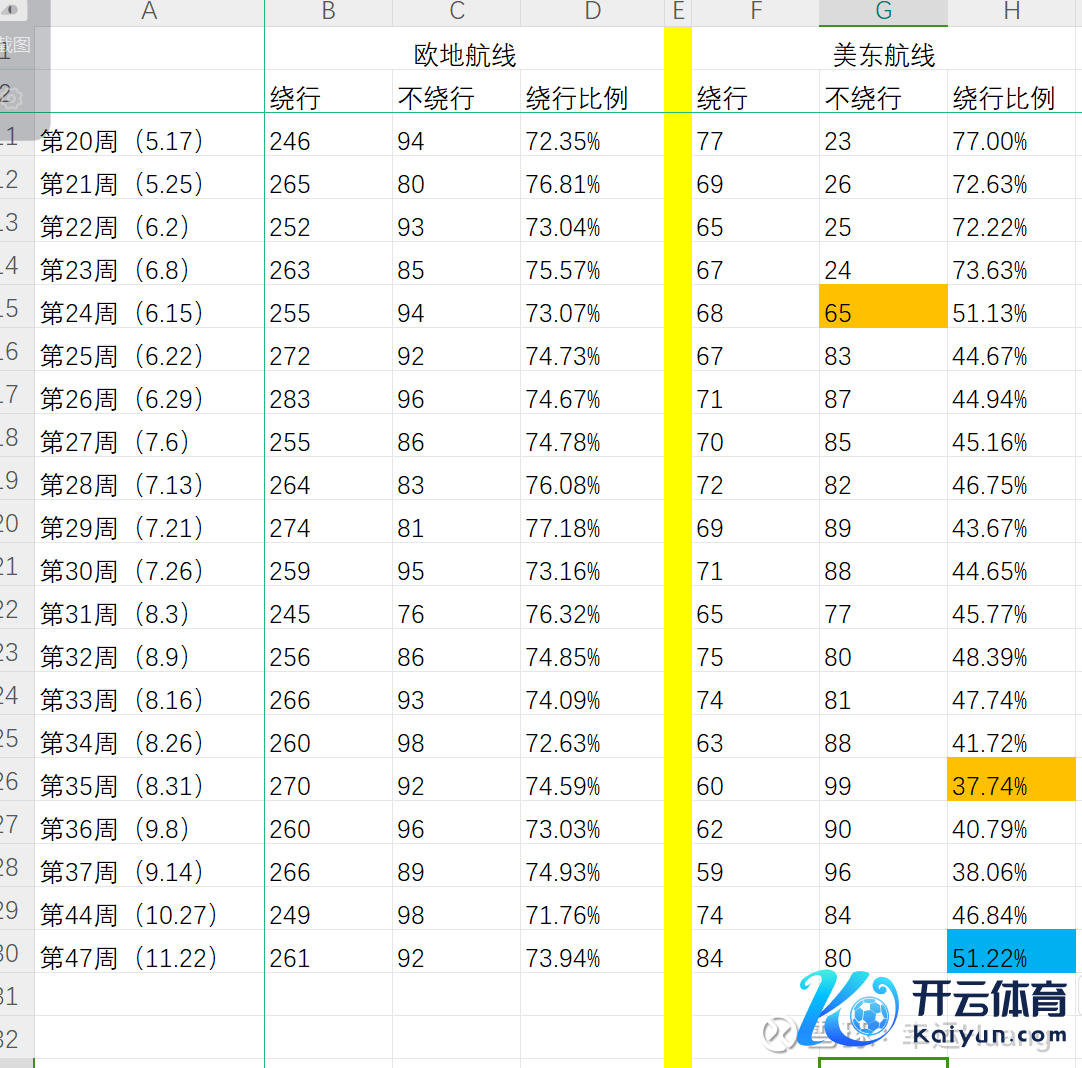 集装箱船欧地航路绕行航次261,非绕行航次92,绕行比例73.94%;好意思东航路绕行航次84,非绕行航次80,绕行比例51.22%,欧地航路绕行比例普通波动,好意思东航路跟着巴拿马运河水位上升通航规复普通绕行比例缓缓下降之后当今绕行好望角的占比又再次捏续回升。