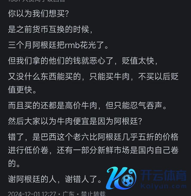 从个东谈主想考与自我领悟的维度动身,阿根廷与中国牛肉贸易的案例让咱们深远鉴定到海外贸易的复杂性和多元性。在全球化的期间,列国之间的经济联系日益紧密,贸易互助不再只是局限于商品的交换,而是触及到产业结构休养、时间翻新、政策融合、文化调换等多个方面。对于阿根廷来说,要想在与中国的牛肉贸易中取得更大的收效,需要接续优化自己的产业结构,加强时间翻新和品牌诞生,提高牛肉产业的附加值和竞争力;积极唐突贸易政策的变化和市集风险,建立倡导的贸易互助关系;深入了解中国的文化和消费习惯,开展针对性的市集履行和营销行为。对于中国来说,与阿根廷的牛肉贸易不仅得志了国内消费者对高品性牛肉的需求,也为中国的农业入口多元化战术提供了故意的试验教会。同期,通过与阿根廷的贸易互助,中国不错进一步加强与南好意思洲国度的经济联系和文化调换,拓展在海外舞台上的影响力和互助伙伴关系。在异日的海外贸易中,列国齐需要以愈加绽开、包容、互助的立场,共同唐突全球性的挑战和机遇,结束互利共赢的发展缱绻。