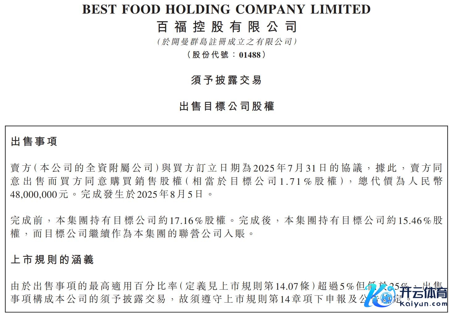 百福控股在公告中称,转让碰见小面股份是公司以为中国餐饮业当今处于成长阶段,出售股份可当令回笼脱手投资本钱以补充营运资金并寻求新投资机遇,同期不错赢得可不雅收益,公司当今莫得蓄意出售剩余股权。